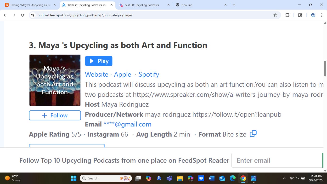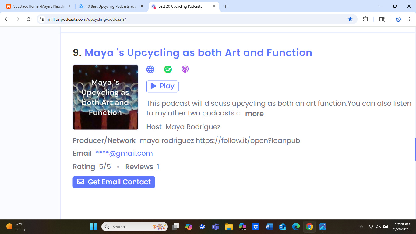 Maya's Upcycling as Both art and FunctionAlways striving to create the bestMaya RodriguezSep 20, 2025ShareIts been a difficult transition from one podcast host as it takes a while for people to be aware of the new site and for some the apps to update the info But here to report that this podcast is still holding strongSubscribeShare